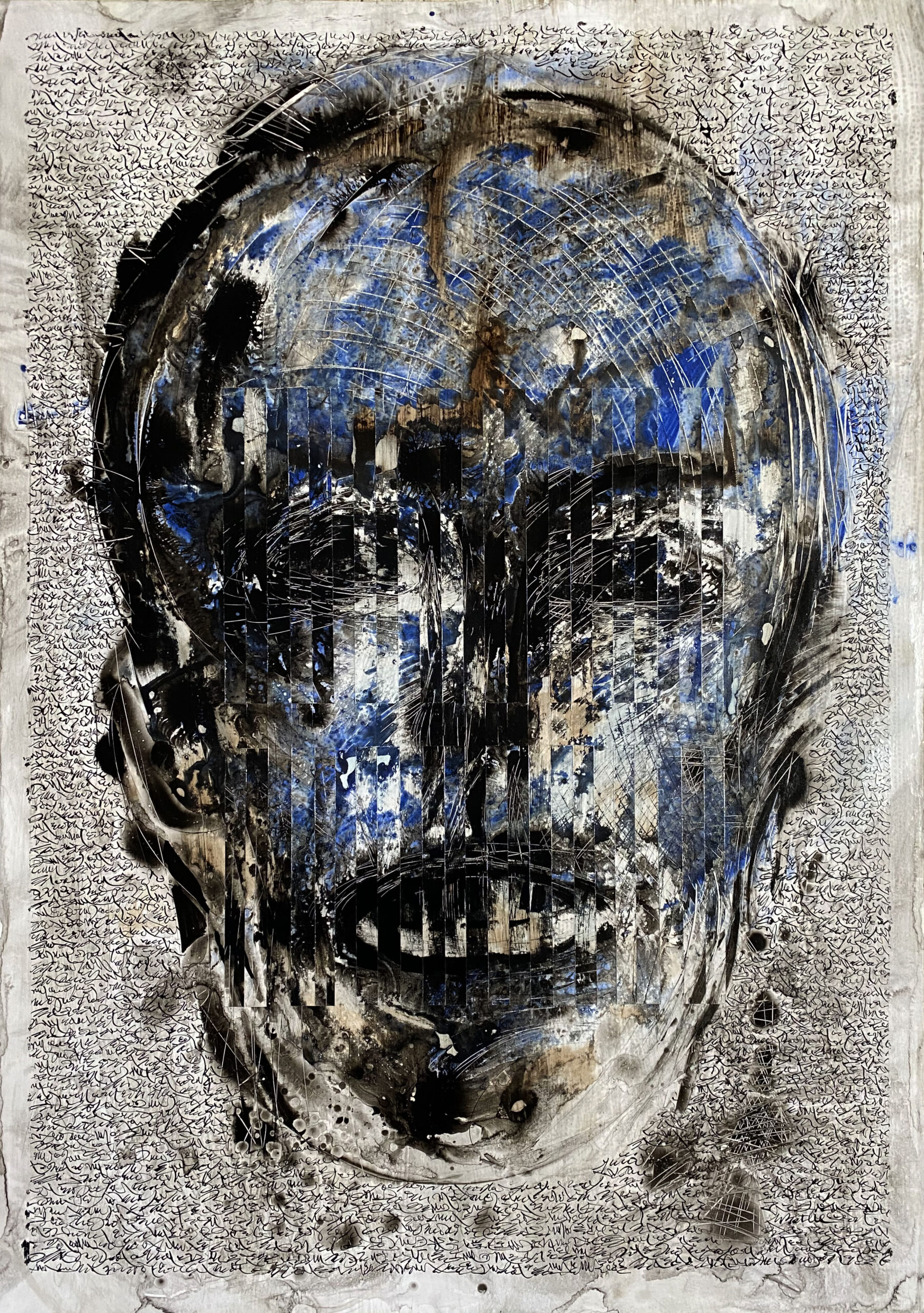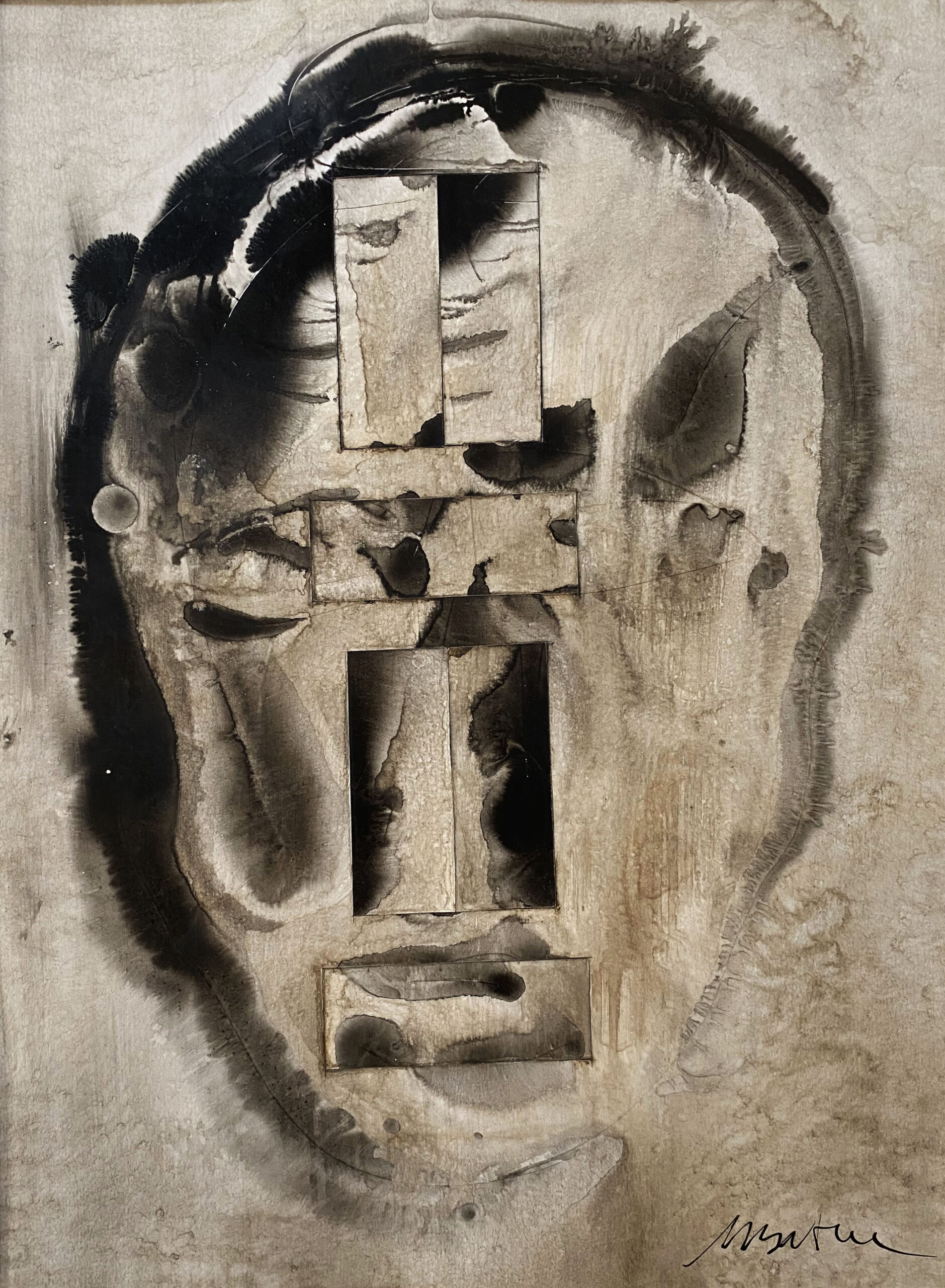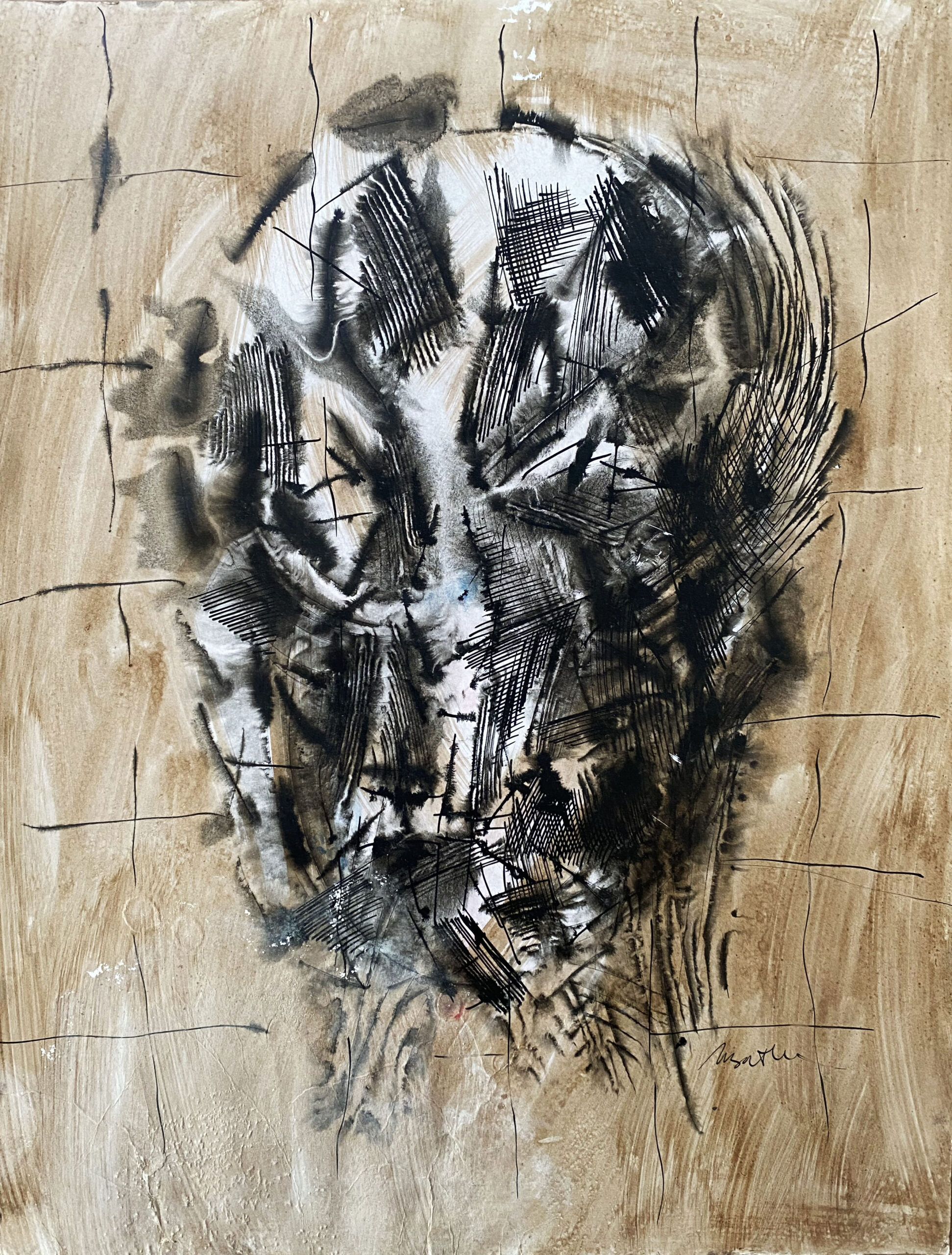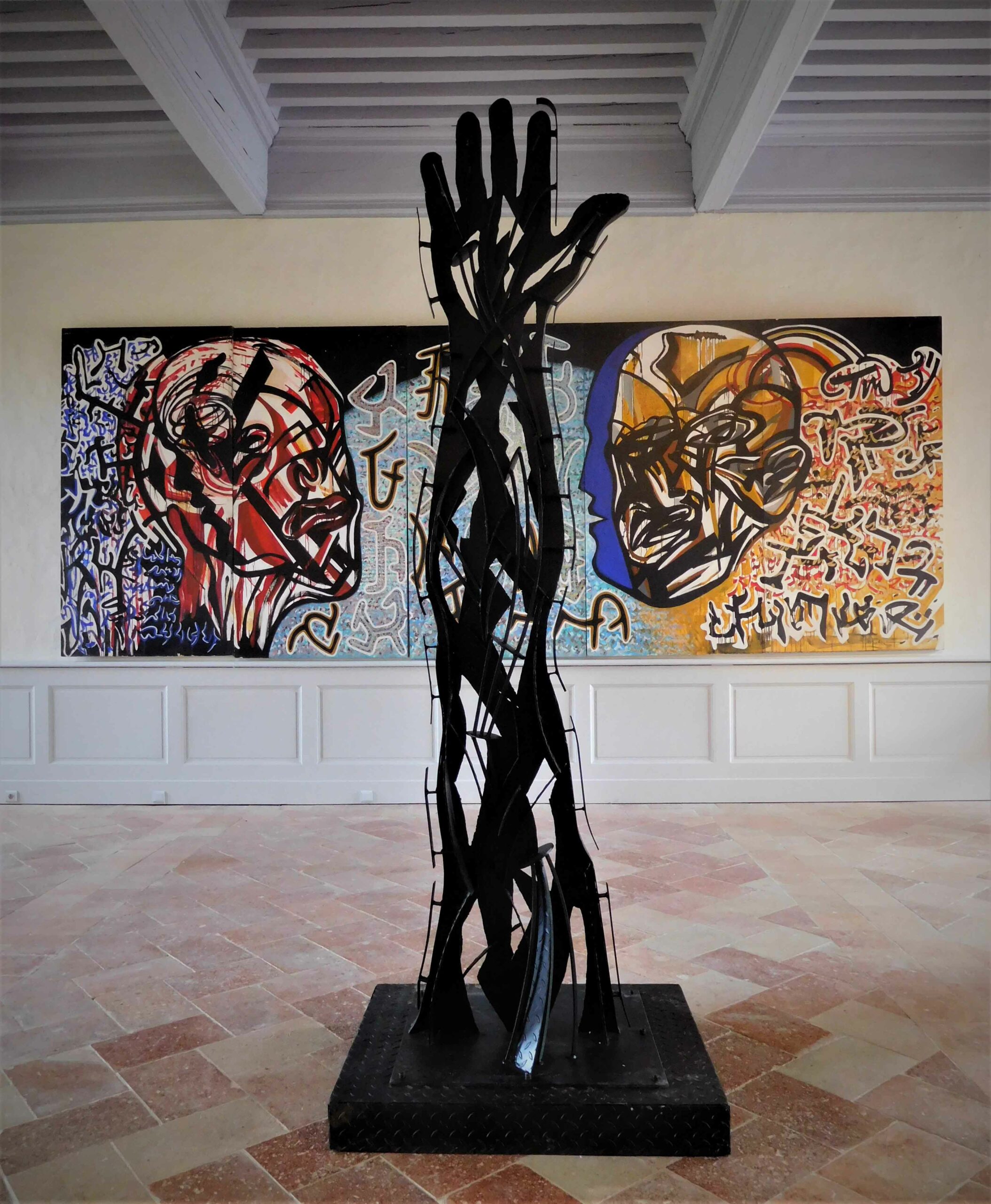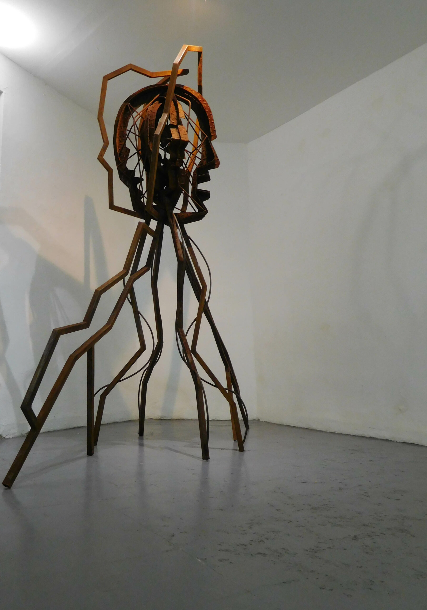 Bustes Laréole, acier et masque en bois, 2015, 65x110 cmJPG