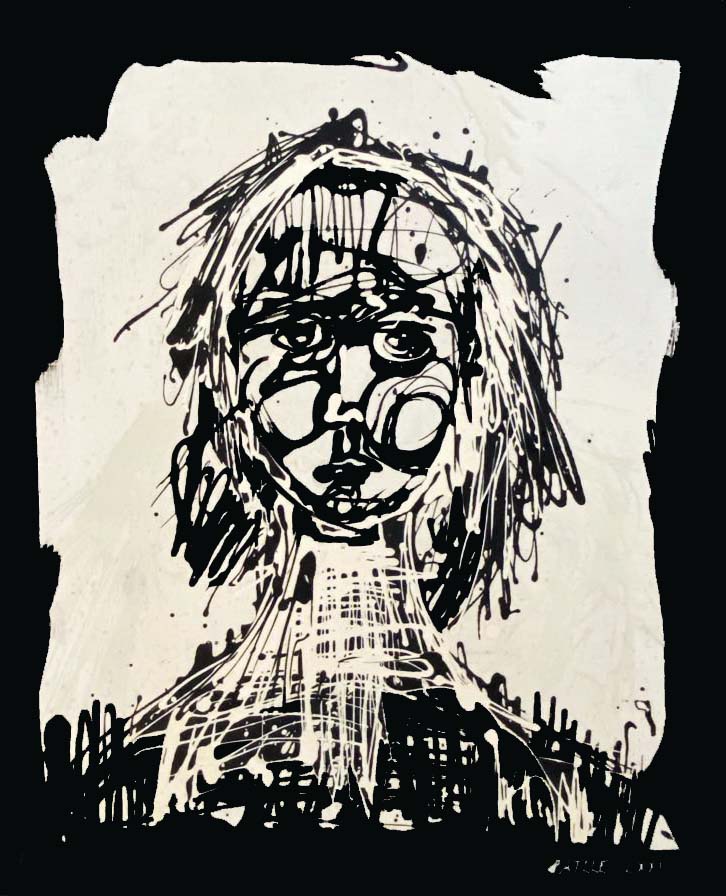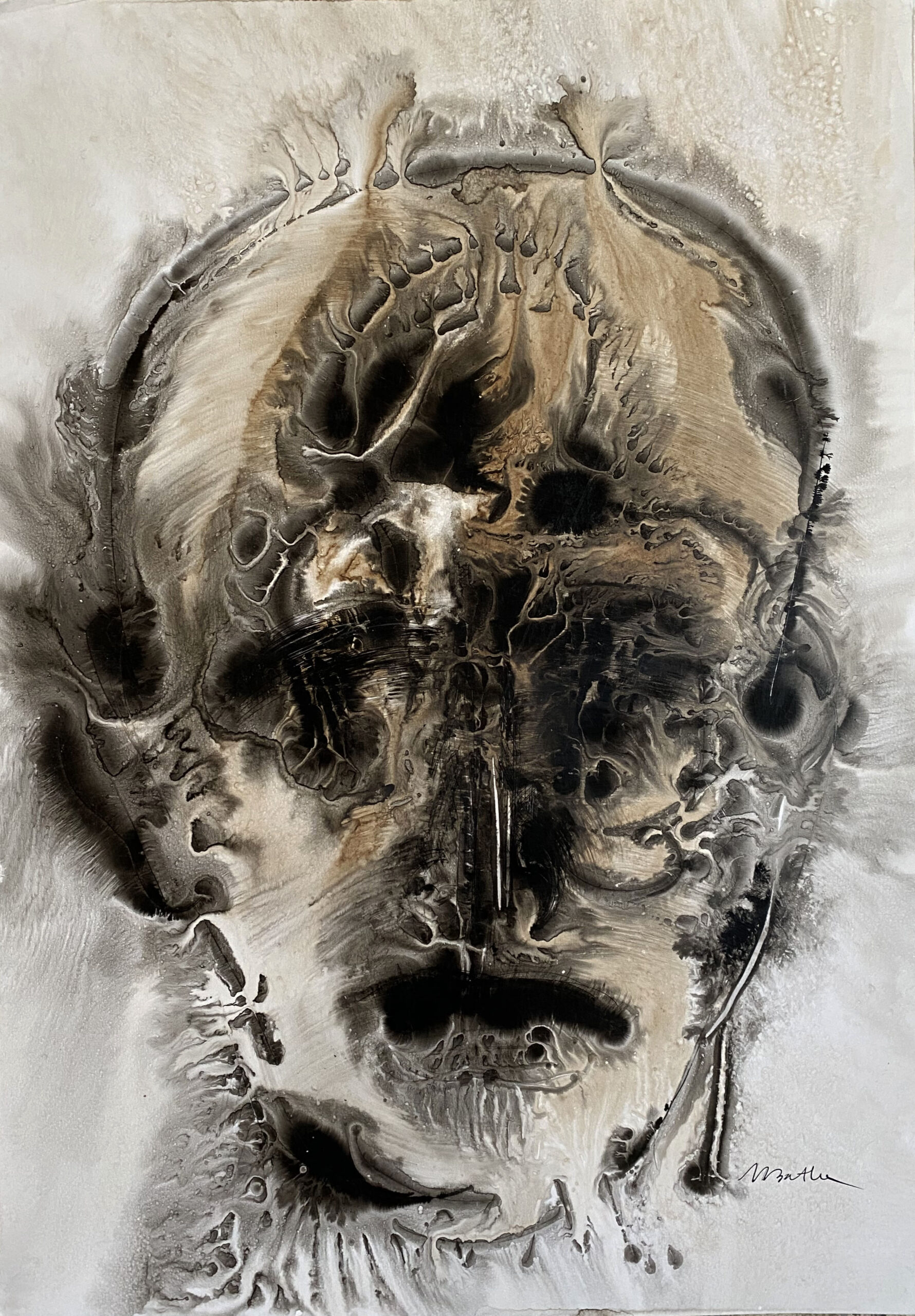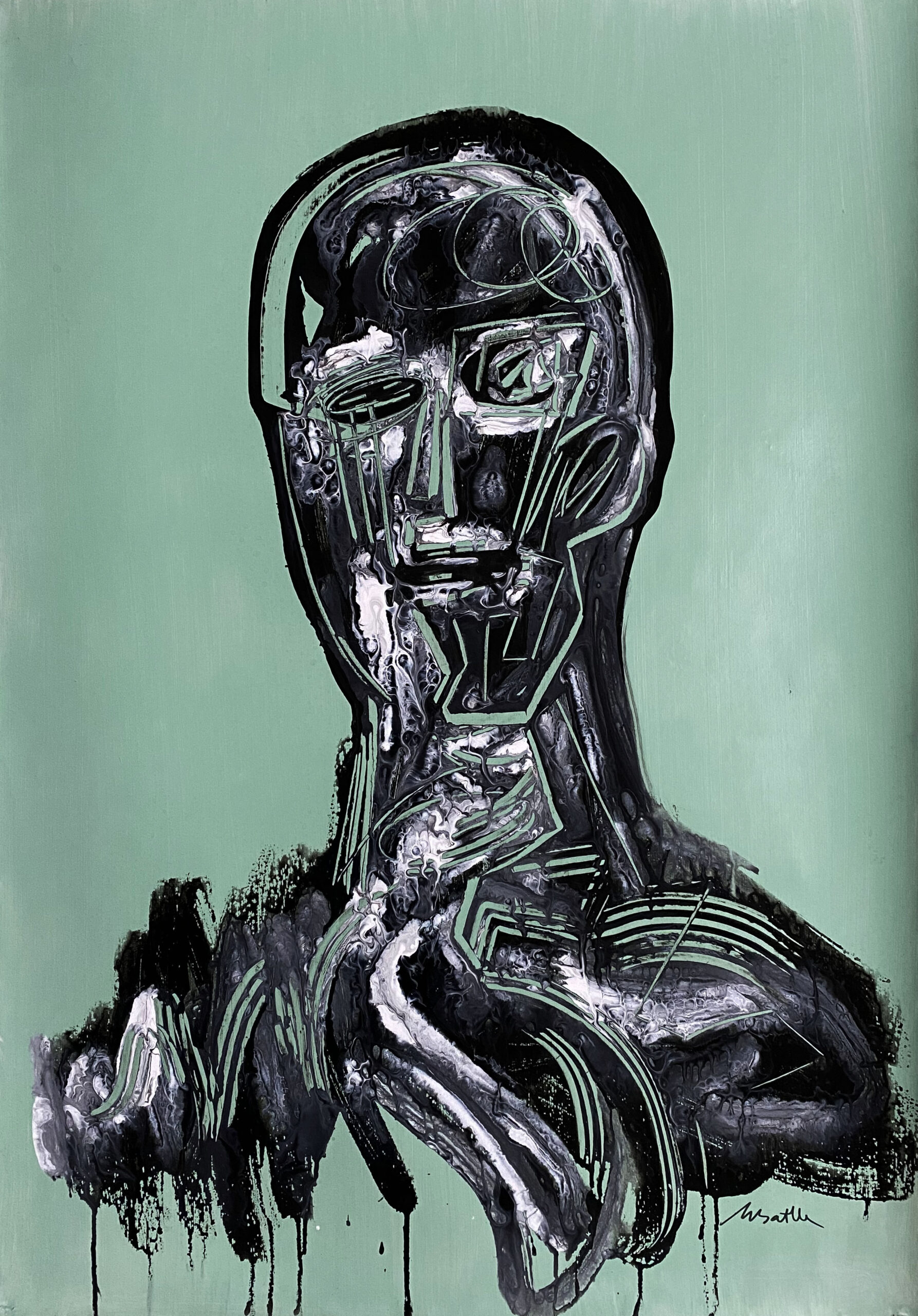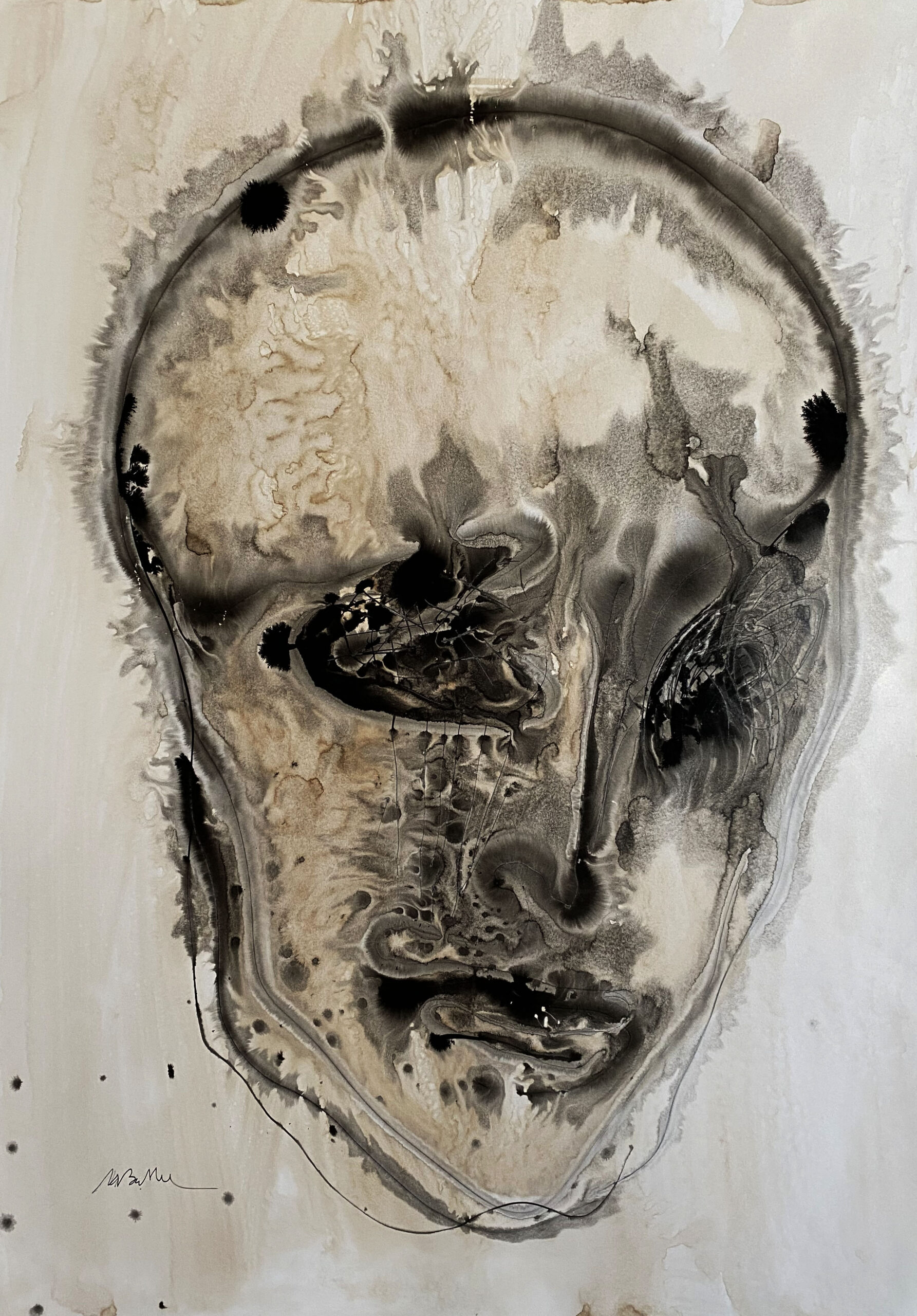 Bustes Laréole, acier et masque en bois, 2015, 65x110 cmJPG
