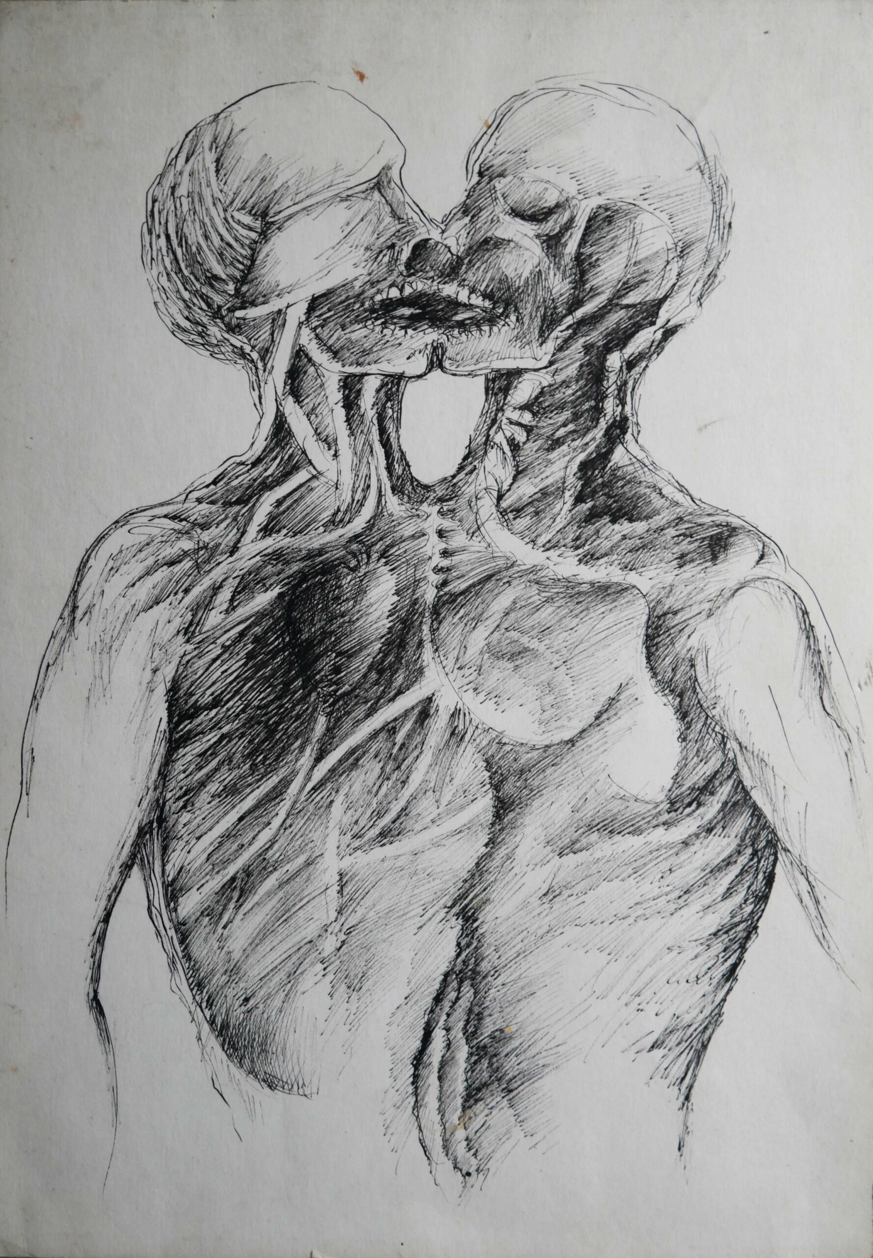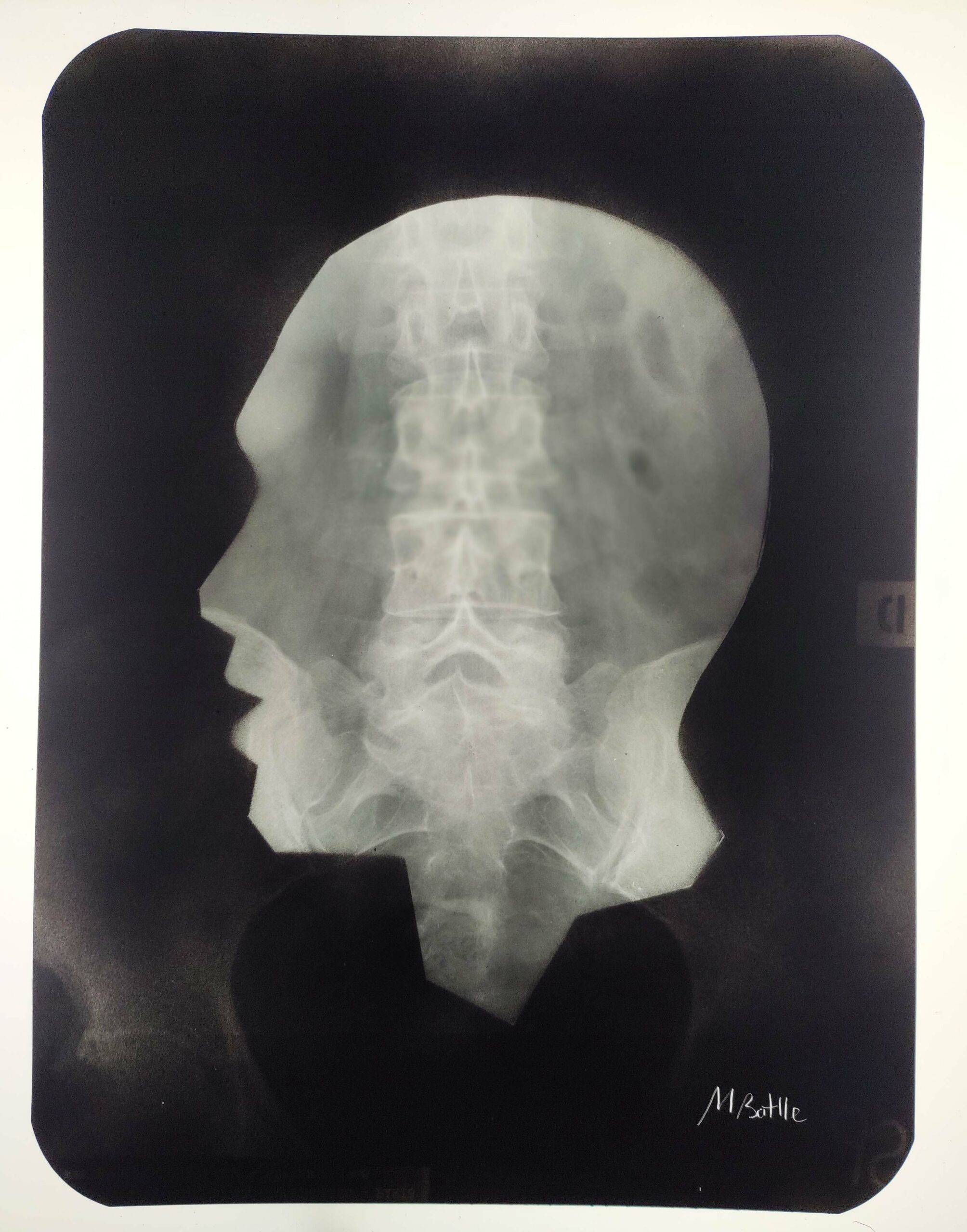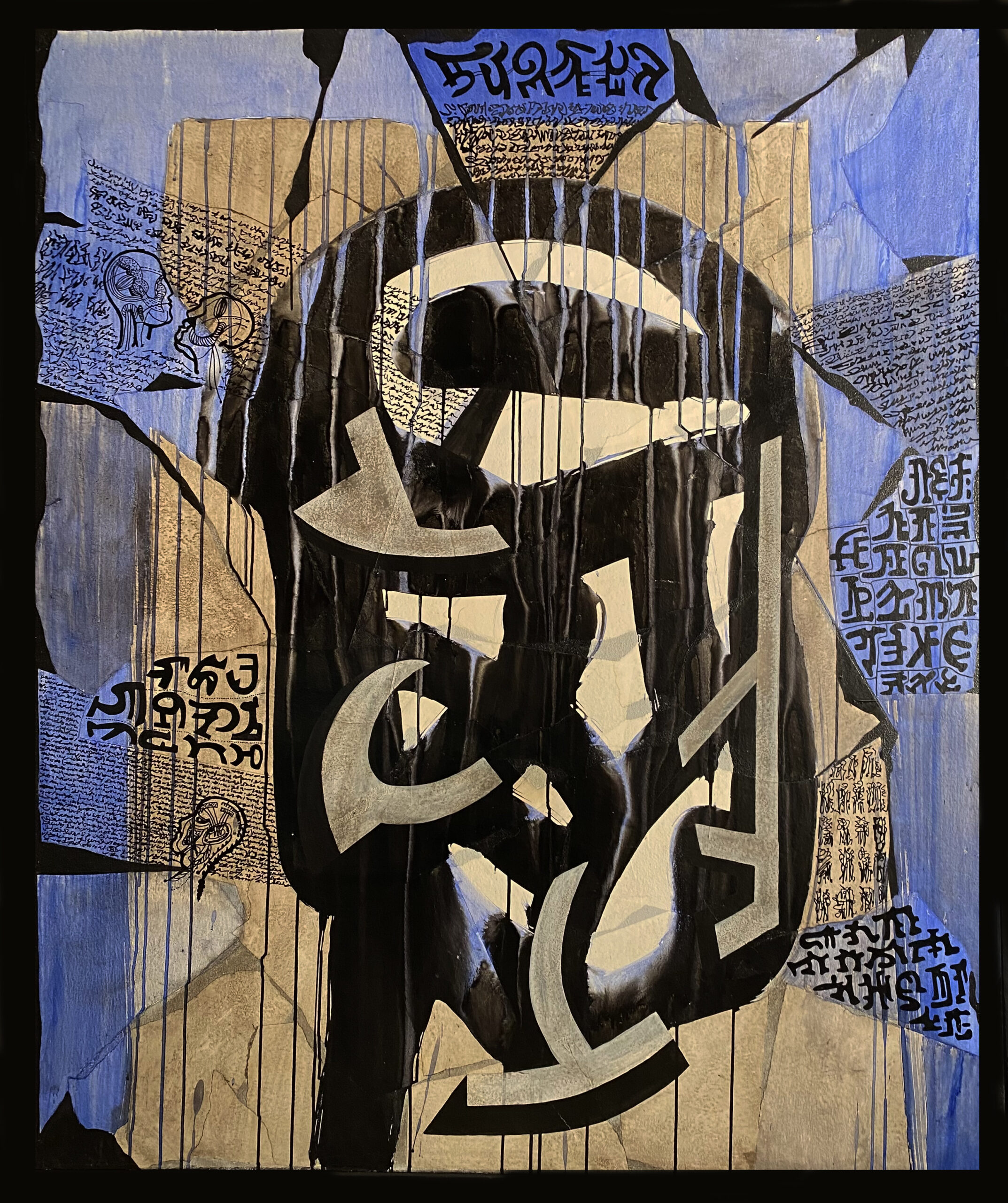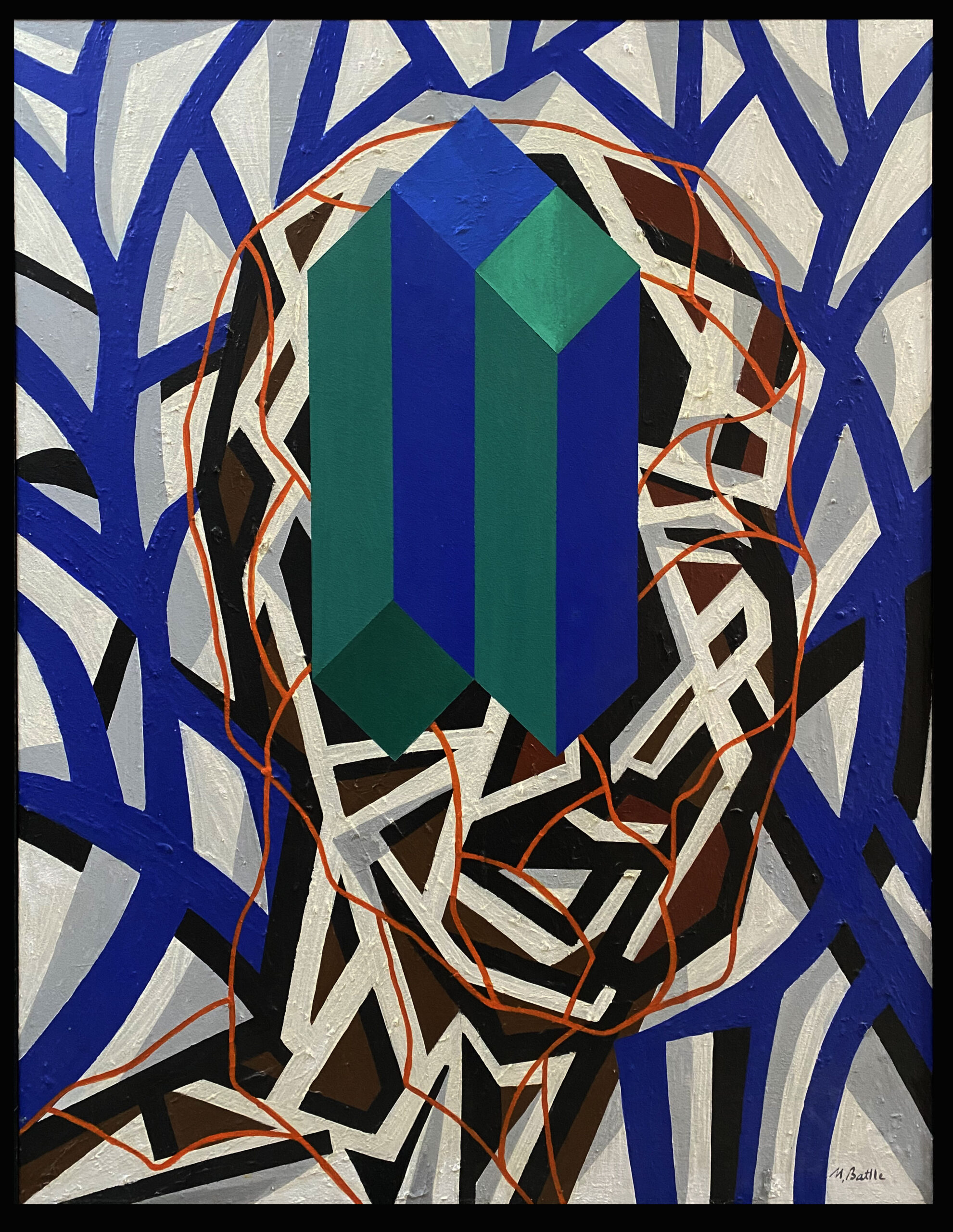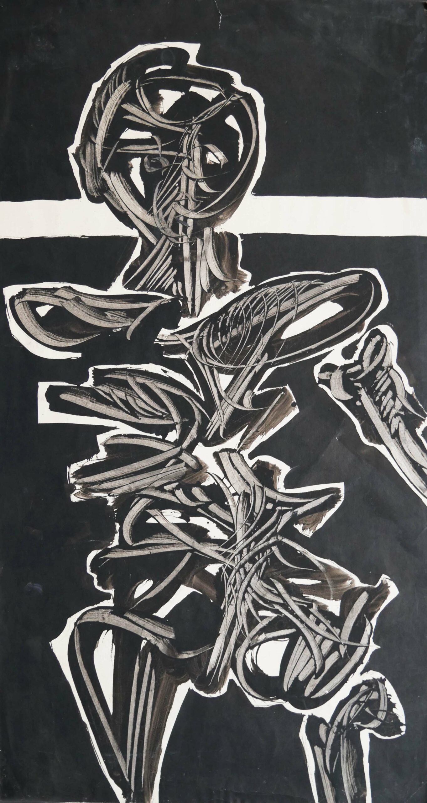 Bustes Laréole, acier et masque en bois, 2015, 65x110 cmJPG